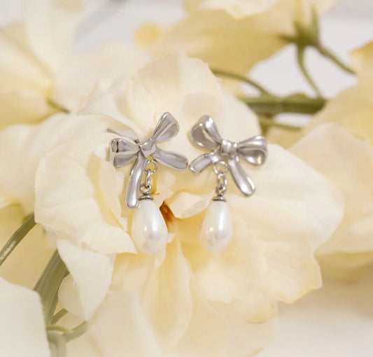 Bow And Pearl Earrings