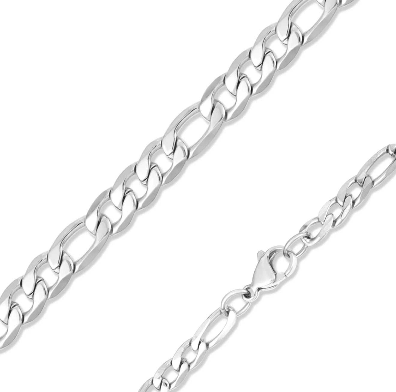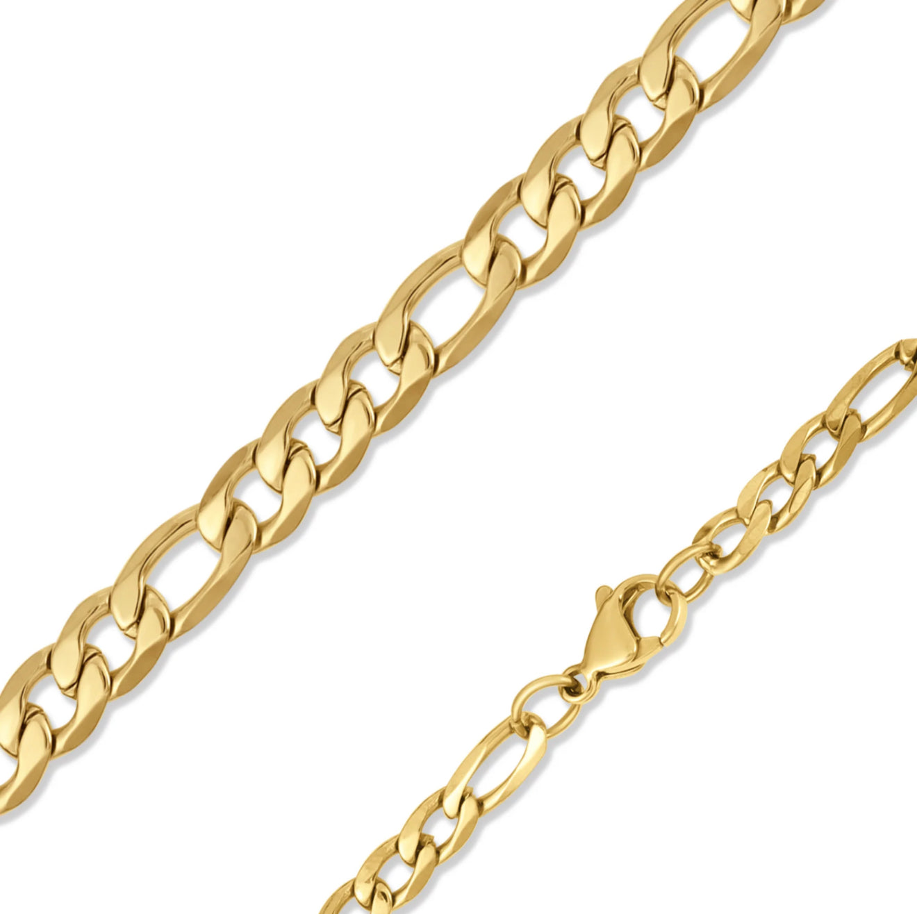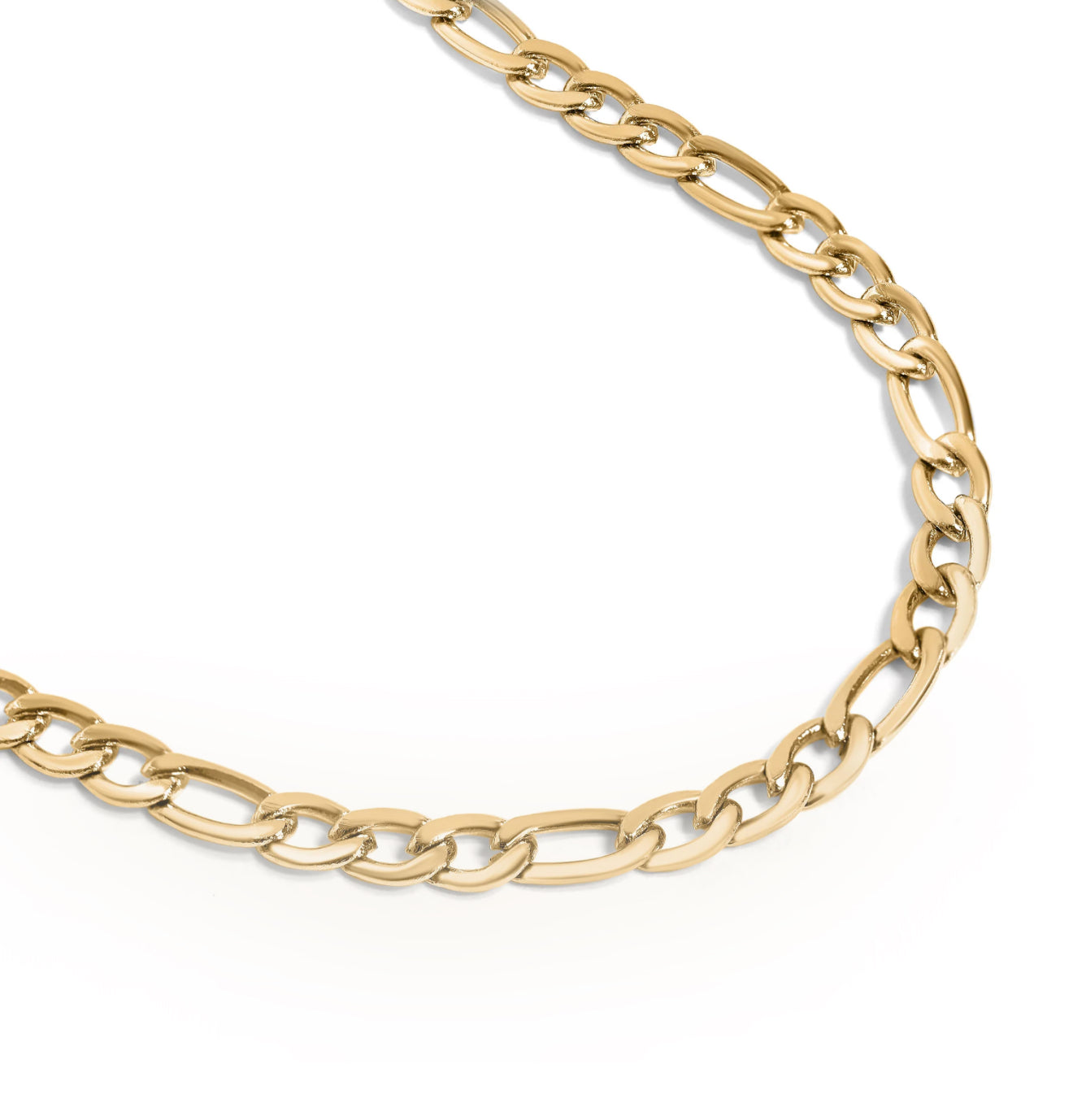 Looking for a bold, versatile statement piece to add to your jewelry collection? Well, look no further! This stunning necklace features a figaro chain design, PVD coated in a gleaming 18K gold, with a lobster-claw clasp to give you a comfortable and secure fit. The popular figaro chain design is timeless and looks great with any outfit and with the flat construction will lay smoothly against the chest.