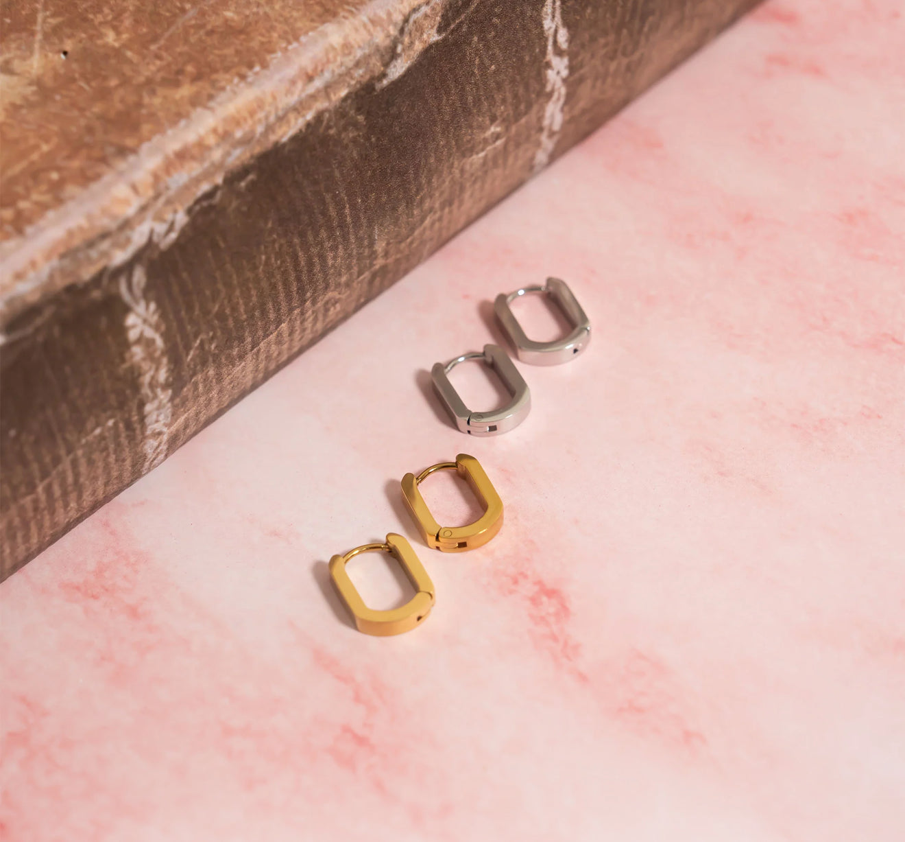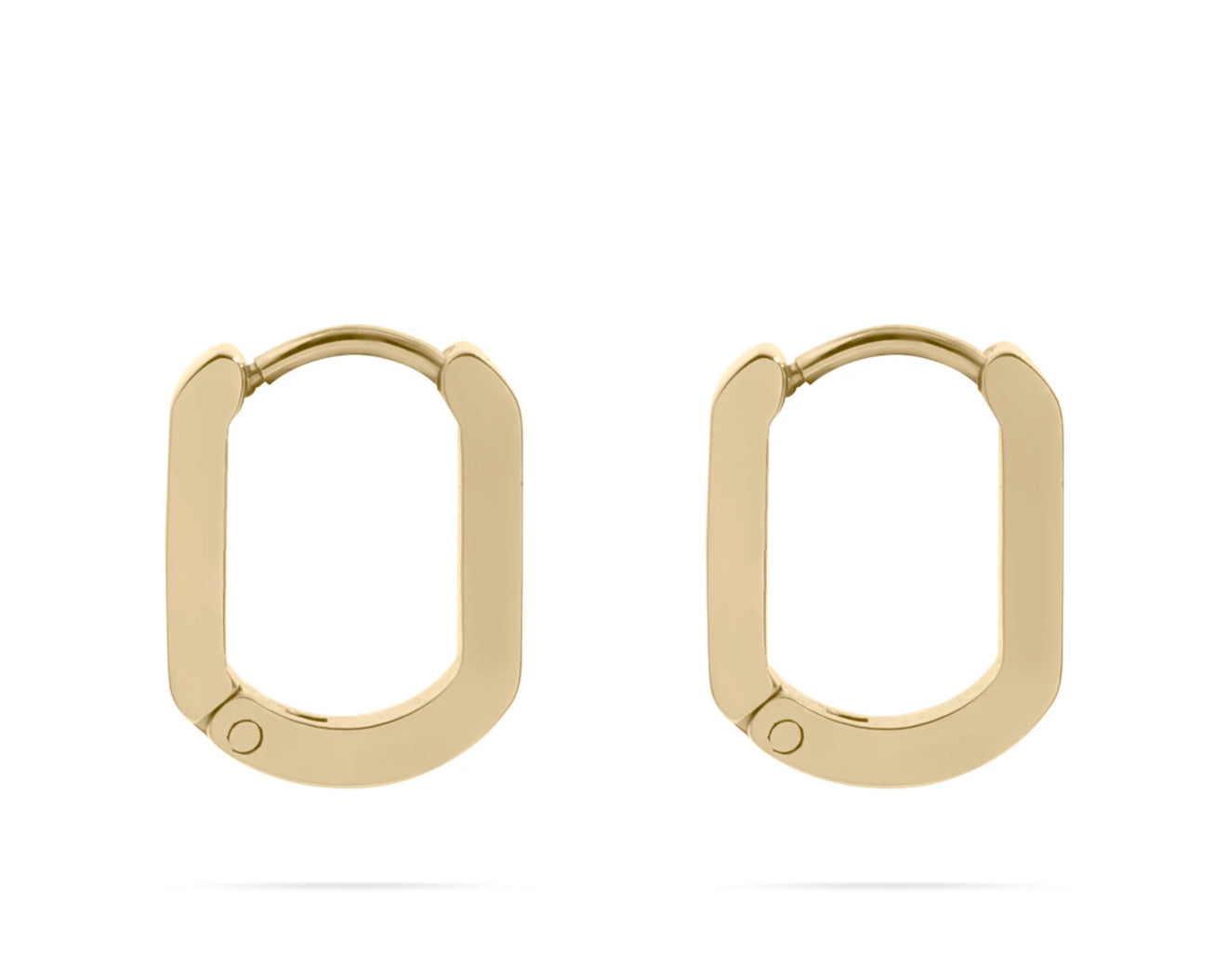 Sleek, modern, and effortlessly chic — these oval huggies are a staple for any jewelry collection. Crafted from durable stainless steel and finished in radiant 18K gold PVD, they hug the ear with a smooth, flattering silhouette. Perfect for everyday wear or stacking with any pair of studs or hoops.
